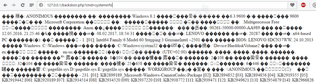 > 127.0.0.1/backdoor.php?cmd=systeminfo