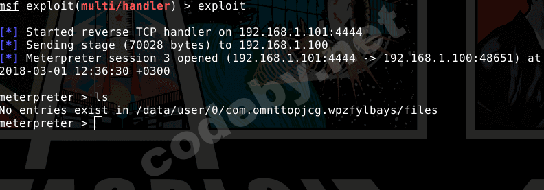 Нам необходимо создать полезную нагрузку, создали. Далее запускаем листенер в метасплоите, получили сессию. Приступим.