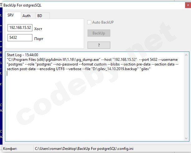 "C:\Program Files (x86)\pgAdmin III\1.16\\pg_dump.exe" --host "192.168.15.50" --port 5432 --username "postgres" --role "postgres" --no-password --format custom --blobs --section pre-data --section data --section post-data --encoding UTF8 --verbose --file "D:\old.backup" "gilev"